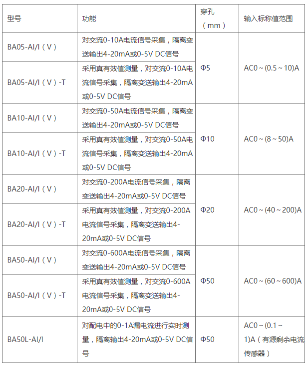 BA系列交流電流傳感器